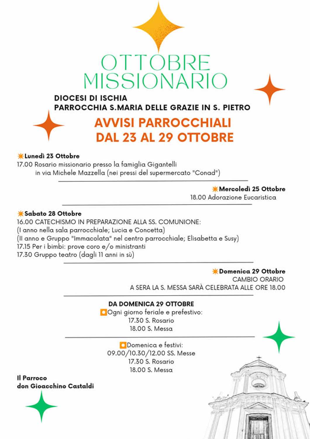 Ore 17.00 Rosario Missionario presso la famiglia Gigantelli in via Michele Mazzella (nei pressi del supermercato Conad)